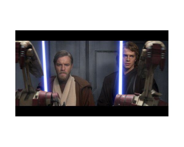 Hoch über dem Heimatplaneten Coruscant tobt ein gigantischer Krieg zwischen der Droidenarmee von General Grievous und der Klonarmee - so beginnt "Episode III - Die Rache der Sith". Anakin Skywalker und sein Mentor Obi Wan Kenobi brechen zu einer halsbrecherischen Rettungsaktion auf, um den Kanzler der Republik aus den Klauen der dunklen Seite zu befreien. "This is where the fun begins", erklärt Anakin fröhlich auf dem Weg dorthin. Und genau das bestimmt den Beginn des letzten Teils der Saga, denn die erste halbe Stunde gehört ganz klar den beiden gut gelaunten Kanzler-Rettern und natürlich R2D2 in seiner komischsten Rolle.